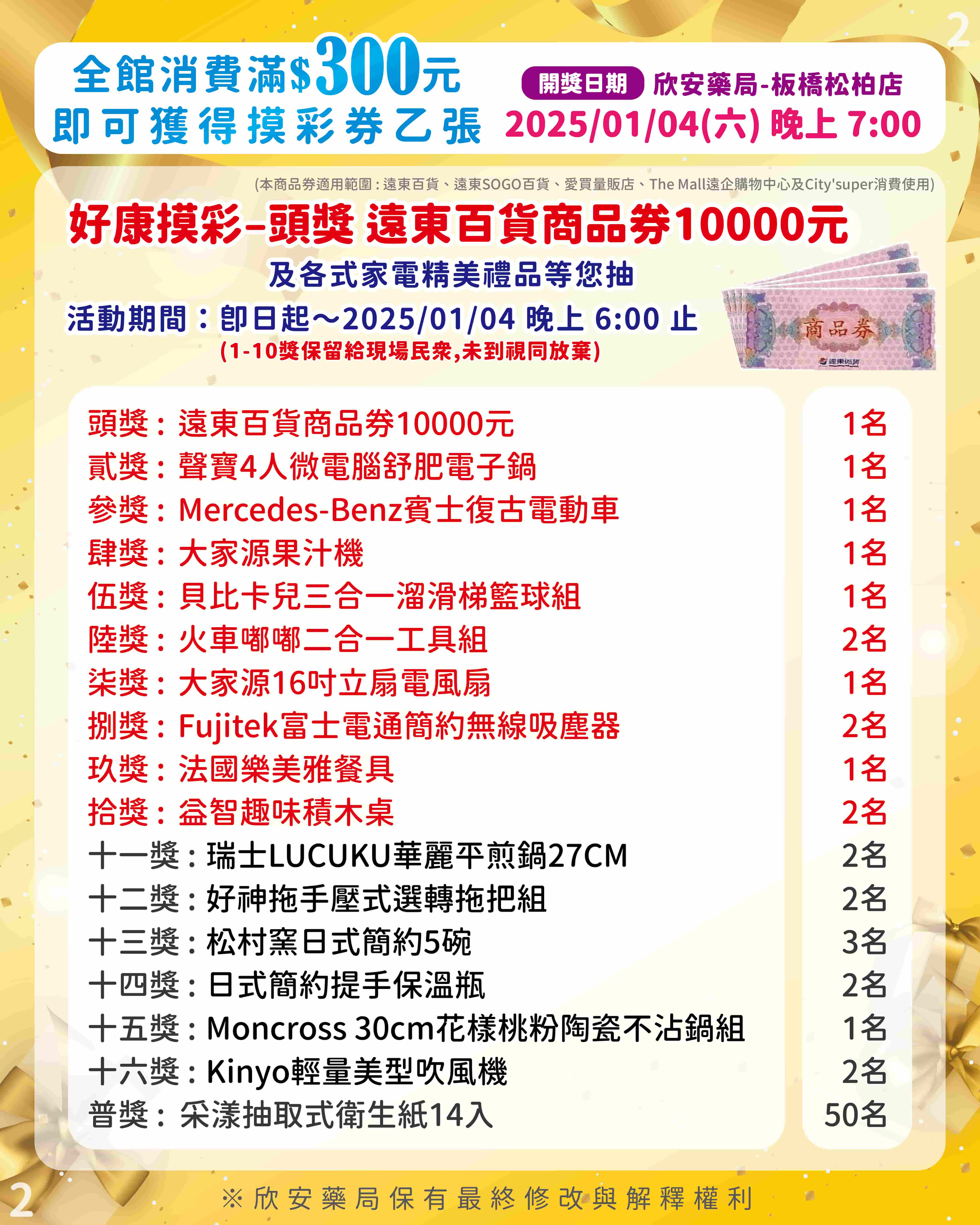 【欣安藥局 松柏店】2025/01/04 年終摸彩活動