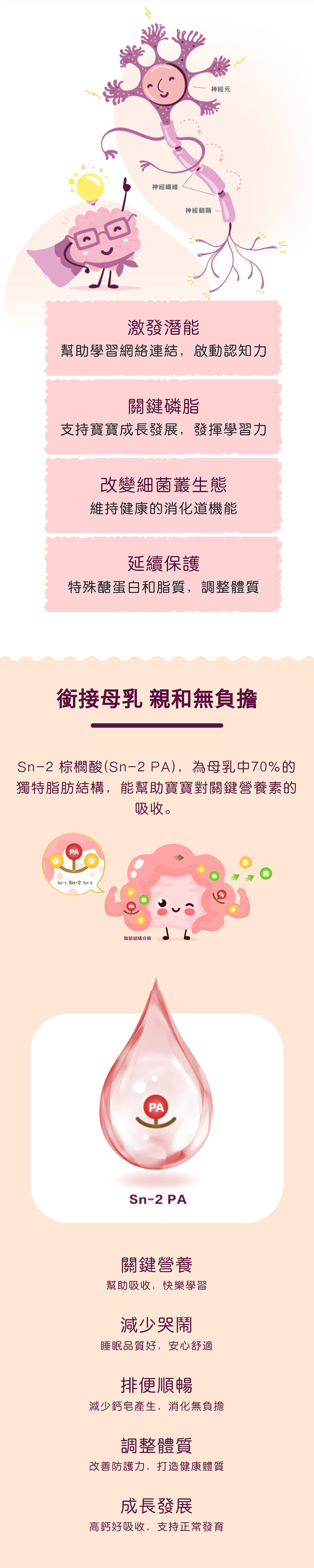 ⭐獨特脂肪結構Sn-2 PA:親和無負擔,幫助寶寶對關鍵營養素的吸收。